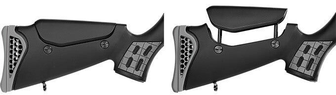 Luftgeværer har et flot syntetisk skæfte hvor der er kommet nogle fede og brugbare udskæringer i både forskæftet og i grebet af luftgeværet, dette gør at du får et bedre greb om luftgeværet. Bagest på skæftet sidder der en justerbar kindbyde, som kan indstilles i højden og gør at du kan personalisere sådan den støtter lige som du har brug for.